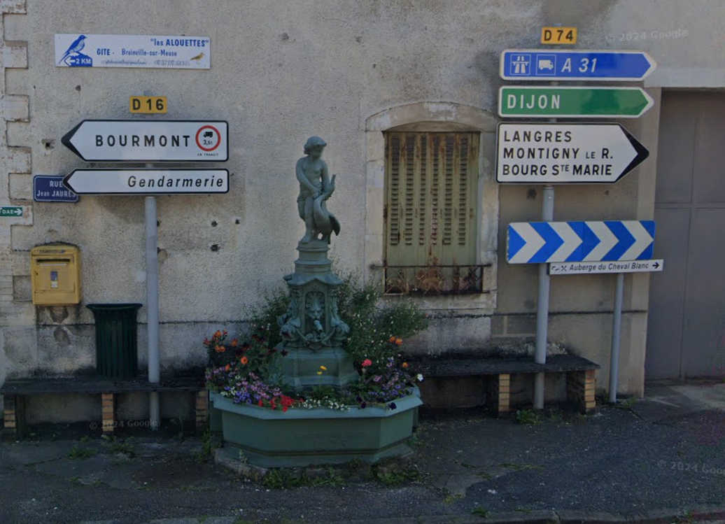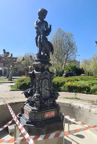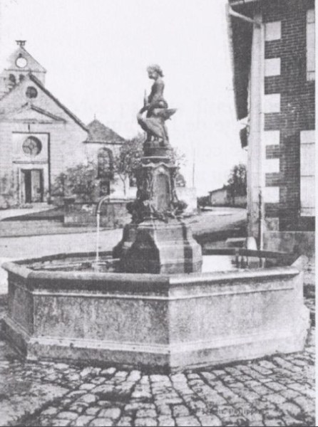 Seguimos por Francia, empezando por una imagen que vais a decir que no es la Flora. Y tenéis toda la razón, porque en este pequeño pueblo de la región del Grand Est, durante la II Guerra Mundial un soldado alemán destrozó la figura de La Flora en 1941, dejando inutilizada la fuente. Poco después la cambiaron con otra figura que seguía teniendo un niño y un ave, pero que no era el mismo. En sus inicios se usaba como abrevadero pero desde los años 60 se lleno de tierra y se usaba de macetera gigante, hasta que hacer relativamente poco, como en el caso de Treviana, se recuperó en su funcionamiento como fuente.