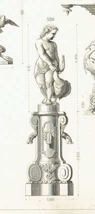 La pieza central de la Fuente de la Flora responde a un modelo ornamental seriado, característico de este tipo de producción: una figura infantil idealizada acompañada de un ave acuática, integrada en un conjunto funcional destinado a surtir agua. La repetición de este mismo motivo —con mínimas variaciones— en distintas localidades europeas refuerza la hipótesis de una producción industrial a partir de catálogo, más que de una obra escultórica única.