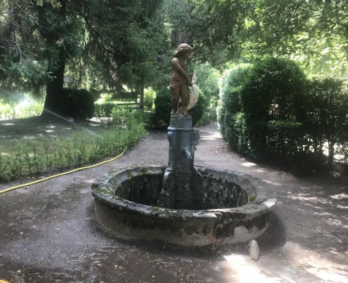El origen de esta investigación, nuestra preciosa escultura adorna una zona del jardín romántico del Jardín histórico-artístico El Bosque de Béjar. El Bosque de Béjar es una villa suburbana de origen renacentista, creada en 1567 por el Duque de Béjar y que hoy gestionan de forma conjunta el Ayuntamiento de Béjar y la Junta de Castilla y León. Tiene entrada libre pero es aconsejable visitar su web o llamar para preguntar.