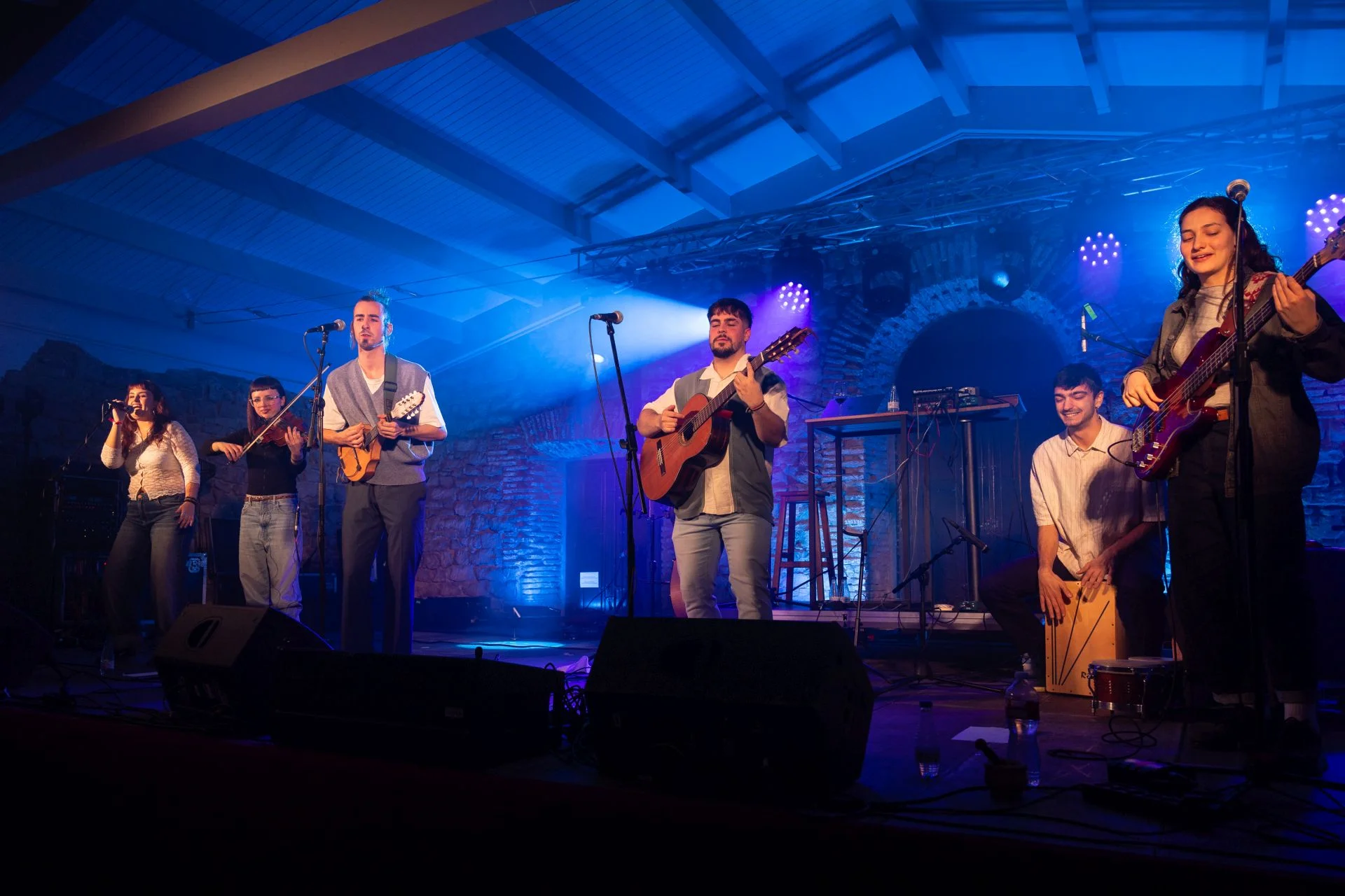 ¿Pero quiénes son estos músicos que han traído aire fresco en forma de cultura y tradición a Treviana? Algunos trevianeses ya les conocían porque compartieron escenario con los Danzadores de Treviana en la Gala del Folclore de la Rioja en Santo Domingo de la Calzada en 2025. Vivace lo formaron Jorge y Diego como dúo instrumental de música folk original utilizando guitarra, mandolina y laúd español, aunque al poco incorporaron voz (Nayra) y posteriormente han añadido otros instrumentos para algunos conciertos, como viola (Carmen), percusión (Álvaro) y bajo (Lucía).
